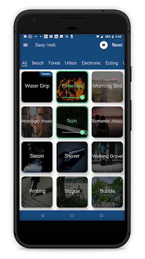 3) Calming sounds for sleep and peaceful rain sounds. (Piano, Guitar, Saxophone, Violin etc...).