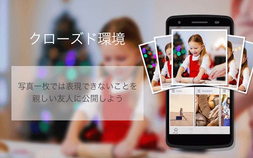 親しい人にしか公開できないクローズドな環境で、お子さんの初めての料理での失敗やスポーツの決定的なシーンなど写真一枚では表現できないことを投稿できます。