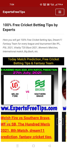 Here you will get 100% Free Cricket betting tips, Dream11 Fantasy Team for every league and tournament like IPL 2021, PSL, TNPL 2021, Vitality T20 Blast 2021, The Hundred Men's Competition 2021, Women’s Matches, International match, Big Bash 2021, etc.