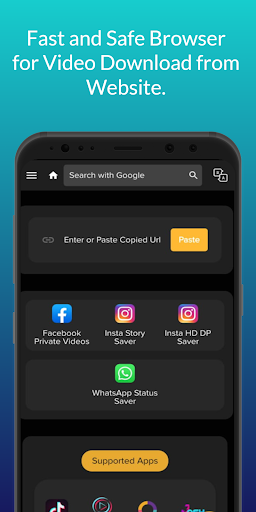 Just one click, you can fast download all format, all style HD videos from webs in the free video downloader app. Fast Video downloader & Browser app Easily download videos and music directly from the Internet onto your Phone Library. This Video Downloader and Browser App Support All formats. Its 100% free! Fast Video Downloader and Browser is the best Video Downloader and Browser.