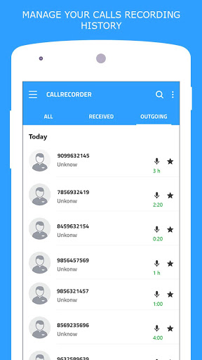 You can record call automatically, record anonymous calls, record important calls. Our recording call incoming g outgoing apps are easy to use with a simple, intuitive interface. You can choose the phone numbers in the phonebook or recording call automatic. The list of recorded files will be stored and streamlined for you in the phone call recorder while on phone.