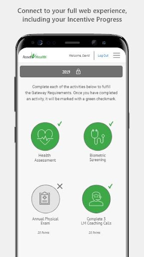 Launch your full web-based wellness portal and view your incentive progress, directly from within the app, without signing in.