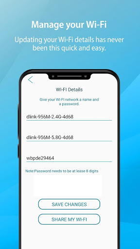 The D-Link Wi-Fi app is for local access only. Your smartphone or tablet must be connected to your Wi-Fi system to use this app.