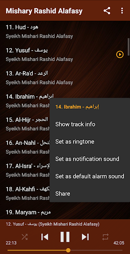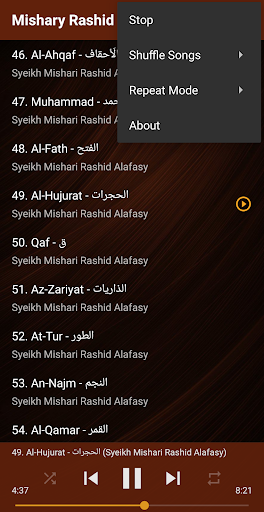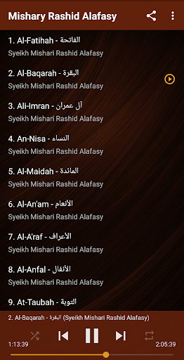 Al-Quran Murattal 30 Juz recitation by Syeikh Mishary Rashid Alafasy (Full MP3 Offline). Just open the Quran and tap to any surah of Quran.