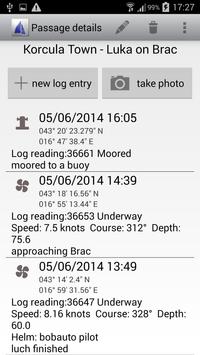 - make log entries on a sailing passage with automatic GPS data and timestamps.