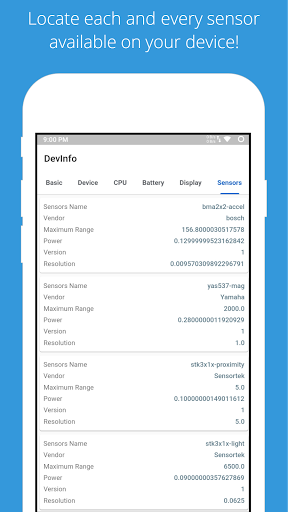 ✔ Sensors: All the sensors in your device with real-time testing.