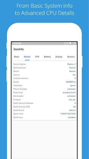 ✔ Device Info: Model, Manufacturer, Chipset, Build Number, and Android OS version.