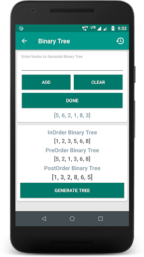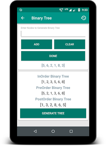 » Generate Binary Tree - Here you will be able to generate a binary tree for nodes entered. The app automatically generates a sequence of nodes in InOrder, PreOrder, and PostOrder form. Click on the Generate Tree button, to view the generated Binary Tree.