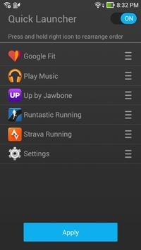 You can manage the apps’ order that appear in the quick launcher, you can also turn it on/off from your connected smart phone.