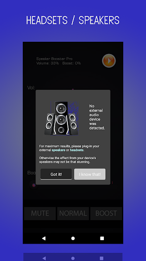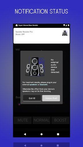 What sets Music Speaker Equalizer EQ the best application is that when a user activates boost this app not only amplifies the music to the end, but also uses the built-in Android equalizer to optimize the frequency channels by means of a special algorithm. So the result is a stronger and clearer boosted sound and Music.