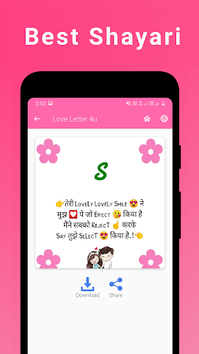 Get daily new life status text. Show your love with love status text using Love Letter 4u Is A To Z Letter Alphabet And DP, Hindi Shayari, Quotes, Wallpaper, DP and Status app. Get daily new inspirational quotes. Latest New A Letter Wallpaper, S letter Wallpaper, Text status in your own language that is marathi text status. If your are punjabi then we also have punjabi text status for you. Express your love with romantic status text, romantic shayari, love shayari & love quotes. Change the way of life by implementing life quotes. Feeling sad? then keep sad status text, sad shayari in urdu or sad shayari of your choice. Special gujarati status text for all gujjus. We have a good collection of hindi shayari for you to show your shayarana mijaz. Have shayari in your native language i.e; urdu shayari, punjabi shayari, english shayari, and many more. Find your love shayari in hindi. Make everyone laugh with funny shayari our funny quotes. Say few love words in urdu with love shayari urdu.