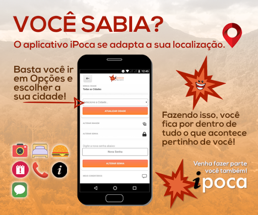 Conheça o iPoca, o app que chegou pra POCAR no seu smartphone. Agora você pode ter acesso à Pontos Turísticos do Estado do Espírito Santo, restaurantes, hotéis, pousadas e eventos, todos eles com rotas e mapas! Dando dois cliques na imagem, você também pode BOTAR PRA POCAR! Também damos a possibilidade de você COMPARTILHAR para seus amigos e colegas tudo o que acontece de bacana no estado! E aí? Vamos BOTAR PRA POCAR??? :D