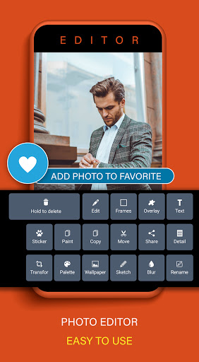 - Copy, cut, rename or photo editor with the crop, overlay, painting, frames, sticker, share, palette color, blur photo, sketch, set as wallpaper