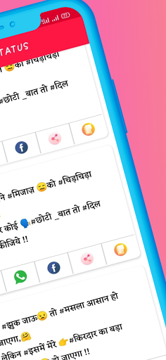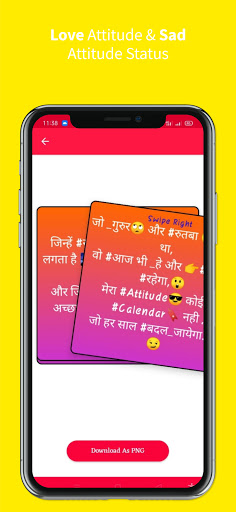 The app is very easy use interface just click next botton and seen the next Attitude Status and easy to read and Attitude Status in Hindi language to easily read all attitude Status 2020 and easily set that as you Whatsapp Status or Facebook Status and send Attitude Status to your friends, family's and your relatives.