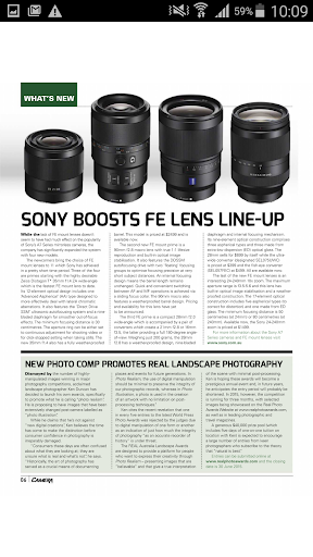 Digital or film? Digital AND film? CAMERA magazine's focus is to assist readers to choose and use the tools they need to create memorable images, and to enhance the skills that will make them better photographers. No matter what medium, readers are kept up to speed with all the latest rapidly changing film and digital products, news and technologies.