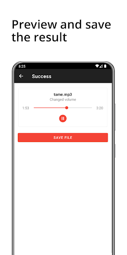 Select an audio file from your device, select output settings and let us do the processing of the audio. It's that simple. When the processing is done you can save the result to your device.