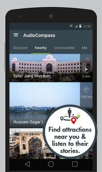AudioCompass intelligently identifies your location and serves up attractions closest to you. You're always just one click away from listening to the audio stories of the attractions closest to you.