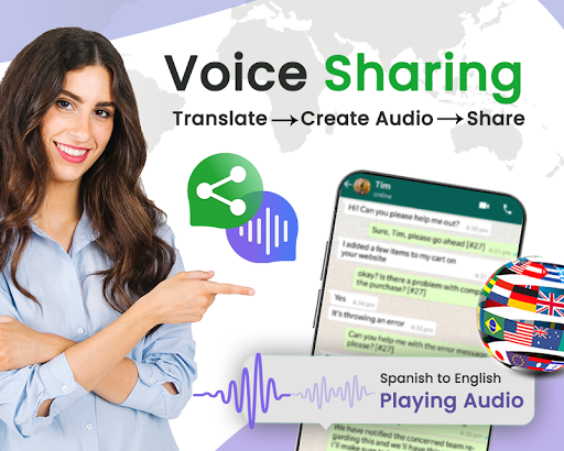 Translate voice & text - voice sharing is sometimes vital because there are people who cannot understand text messages or maybe cannot read, so when you have the option to share audio files or you can translate them into your desired language, your problems like these can easily be solved. Audio files and voice messages for all languages are helpful because they can be further shared on other platforms and equally helpful in future use.