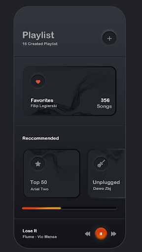 Powerful equalizer, Quick reflection all music and audio files format, easy to support all music & audio file formats, Unique Black Grey App UI.
