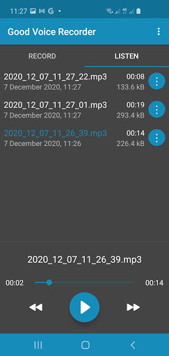 With simple & slick design, this app is very user-friendly & easy to use, which makes it a perfect portable audio recorder. Just tap on the record button to have your mp3 audio ready to listen later.