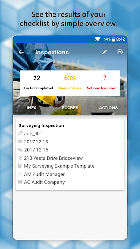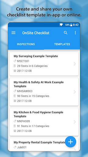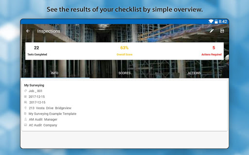 Quick and simple scoring, reusable templates, photo annotation, assignable actions and much more. No accounts, sign-ups or hidden costs. The OnSite Checklist is flexible for use in any industry, simple enough for everyday use, and has a lot’s of powerful features to make your inspections quicker, richer and more informative.