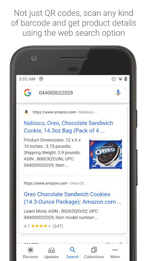Besides being a precise and efficient barcode scanner and reader, you can use the search barcode option to search for the product online. This allows you to compare prices to save money and find out more about a product by getting relevant web search results.