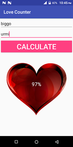 Love Counter app is a app for counting your love percentage with your best buddy.