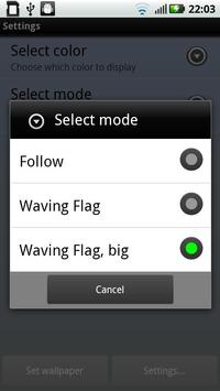My first attempt at an Android Live Wallpaper. Pirate Party logo follows touches. Click center of logo to move it to the center of the screen. Different colors: White, black, orange, orange gradient, blue, light blue, blue gradient, turquoise gradient. Three modes: Follow, Waving Flag and Waving Flag Big.