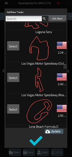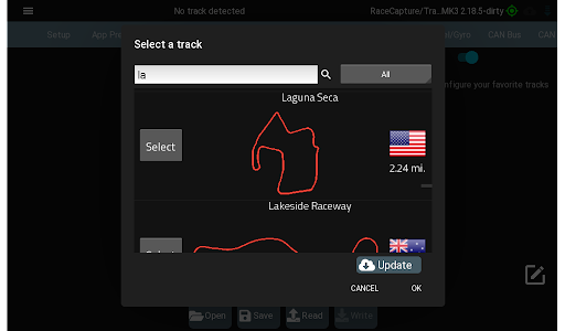 * Start the Race Capture app. When prompted to update race tracks, select 'yes'.