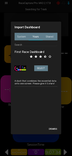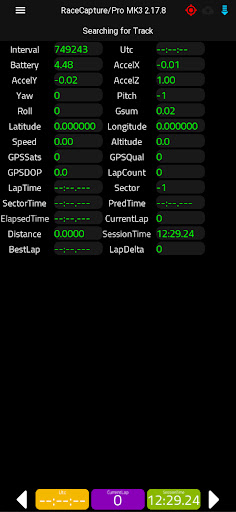 * The app will automatically search and connect to the the RaceCapturePro. The LED on the Bluetooth adapter should be solid.
