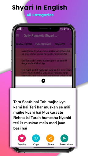 This app contains following category like Best wishes Shayari, Dosti Shayari, Majedar Shayari,