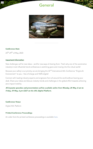 The "Engine & Environment" app keeps you up to date on all the latest news at the International AVL Conference "Engine & Environment" in Graz: