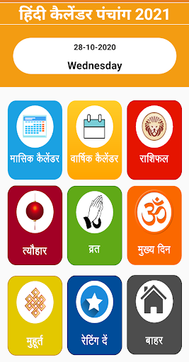 2021 hindi calendar app contains all the information of 2021 .This calendar has the hindu panchang with horoscope and muhurat details.It has all daily panchang information,festivals,vrat information in details .