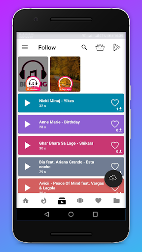 It`s very easy to personalizing your phone with BipRing Free Ringtones for Android, chose the best ringtone for your phone or choose from a large variety of ringtones for sms alert. In the app you will find all new ringtones in tranding every day. You can set these best ringtones as incoming-call soud, alarm soud or for your sms ringtone, and all this for free.