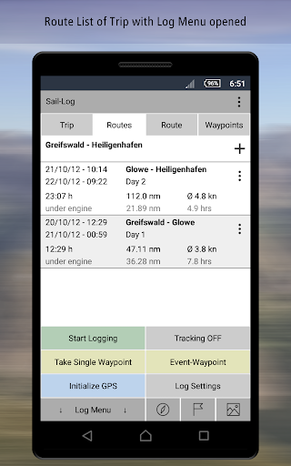 ➤ An editable waypoint-list for each route of your trip lets you keep a complete nautical ship's log in an intuitive manner. Sail-Log will allow you to enter text, choose from a set of logbook entries or shoot photos in-app as well as import them at a later time. Many different options are available for convenient storage of trips, routes and logs.