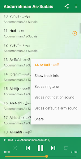Murottal Al-Quran 30 Juz MP3 applications (OFFLINE), voiced by qori Syeikh Abdurrahman As-Sudais.