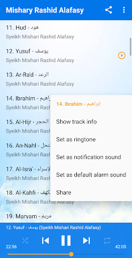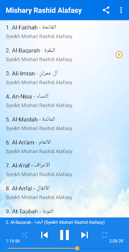 Download for free and listen the audio murottal by Syeikh Mishary Rashid Alafasy with easy through your smartphone. All murattal completely free and 100% Offline, no longer need an internet connection to play.