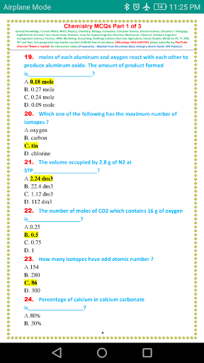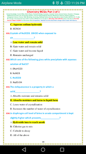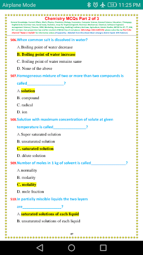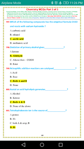 Chemistry 1050 MCQs for job preparation test. with below features.