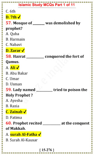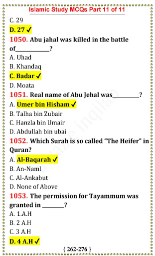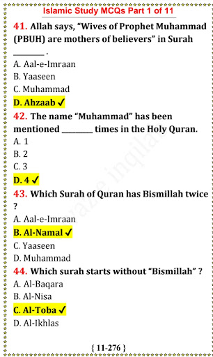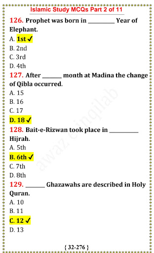 Islamic Studies Mcqs are from the history of Islam, basic Islamic knowledge and beliefs, the life of Prophet Muhammad (PBUH) and his companions (R.A), Quran & Sunnah, Islamic world and practices. most important of Islamic Studies, Islamiat, Islamyat MCQs Notes