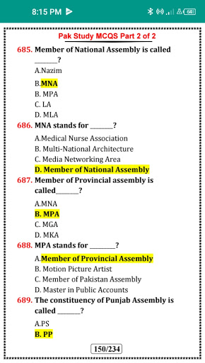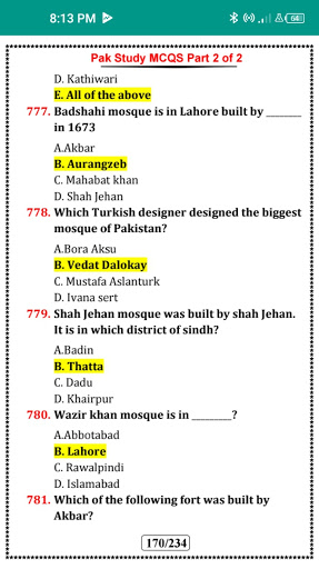 Pak study Mcqs for NTS ,PMS, CSS FTS