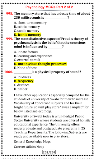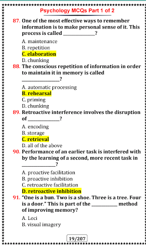 there are many branches of Psychology listed below these mcqs are have been taken from these branches.