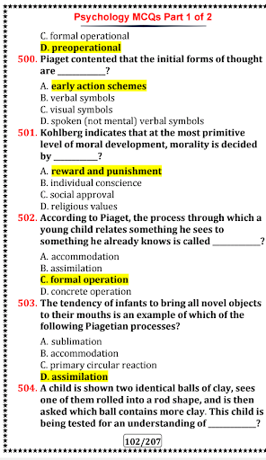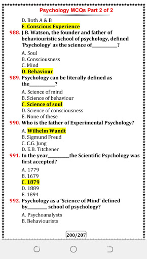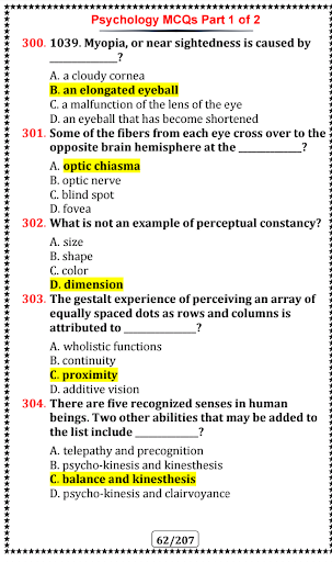 Psychology MCQs from different parts of Psychology for test preparation with below features :