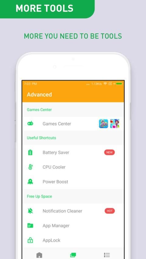 Power Boost Clean = Junk Cleaner + Phone Booster + CPU Cooler + Battery Saver + App Manager + App Locker.
