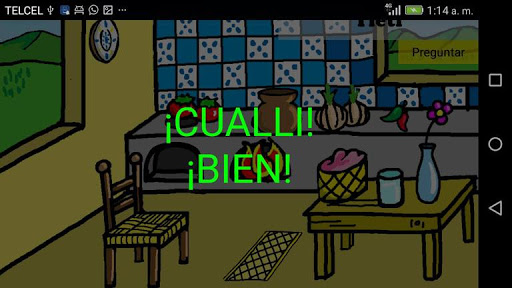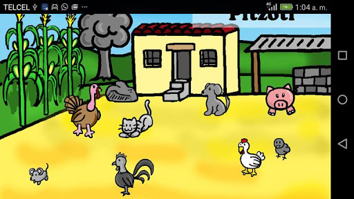 Esta aplicación tiene como objetivo enseñar palabras en lengua náhuatl. Para ello se muestra un escenario con diversos dibujos en donde se muestran animales, utensilios de cocina o los lugares de un pueblo. Al tocar cada dibujo se reproduce un audio donde se podrá escuchar una palabra en náhuatl.