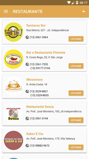 - Visualize informações, como endereço e telefone, de todos os comércios cadastrados sem precisar estar conectado a internet.