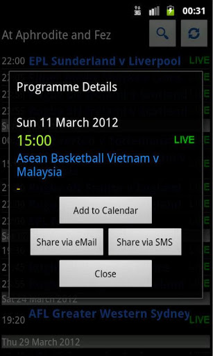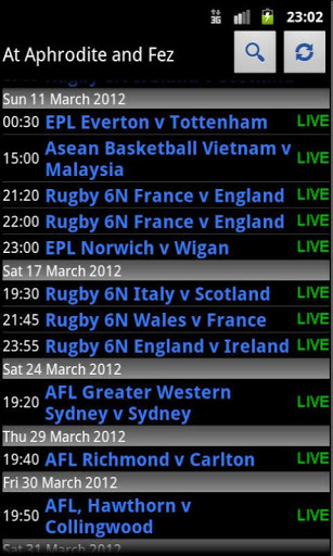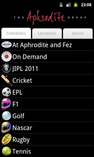 With Aphrodite World Sports Schedules you will never miss your favorite sports match again! With Aphrodite World Sport Schedules for Android, you have access to local-time fixtures for Aussie Rules, Cricket, Formula 1, NBA, NHL, Premier League, Tennis and Rugby. And if you happen to pass through Jakarta you can watch the matches live while enjoying a pint of beer and a fine meal.