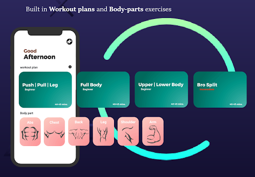 The Kasrat - Fitness, Gym Workout & Bodybuilding app has workout plans to help you reach your fitness or bodybuilding goal as well as a different type of exercises according to the all-body parts like Abs Workout, Chest Workout, Back Workout, Shoulder Workout, Arms Workout, Legs Workout. All the workouts are designed by experts.
