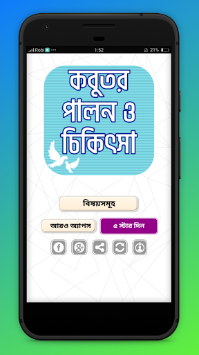 The main purpose of this bangla apps is to give all proper information and tips & tricks on How to make pigeon farm,Pigeon farm business,Types of pigeon or Medicine guide in bangla. Even all medicine guide and vaccination is described here. Hope that this app will give potential information. Please give us positive feedback if you get this app helpful.