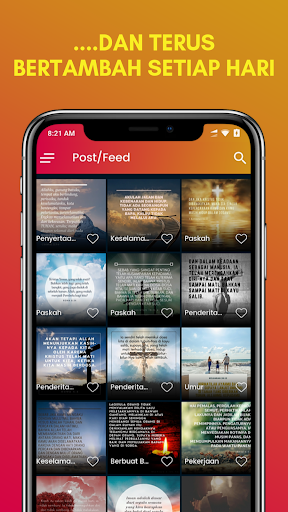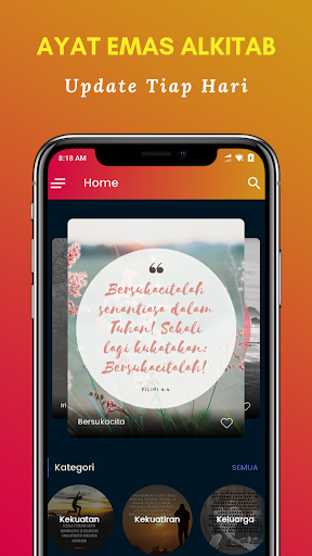 Ayat Emas Alkitab Wallpaper adalah sebuah aplikasi untuk perangkat android yang berisi berbagai kumpulan ayat emas alkitab harian dalam bentuk bergambar HD terbaik yang diupdate setiap hari sehingga anda dapat menggunakannya sebagai wallpaper atau untuk diposting di story atau status social media anda seperti Instagram, Facebook, Whatsapp maupun media sosial lainnya.