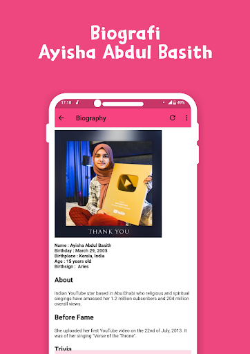 In the Album menu, it contains photos of Ayisha Abdul Basith which can be opened offline and are of good quality.
